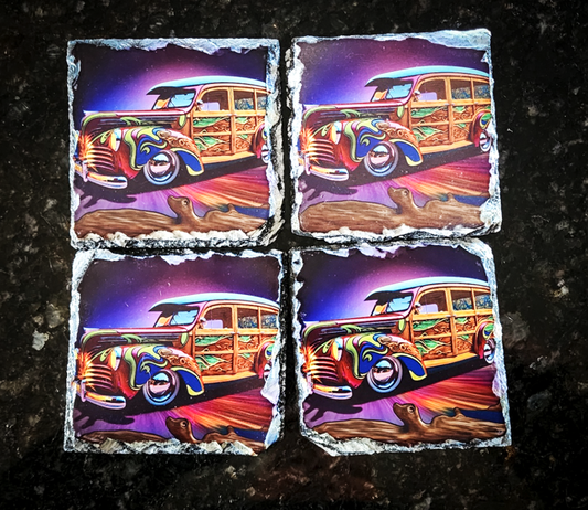 VW Bus Slate Rock Drink Coasters