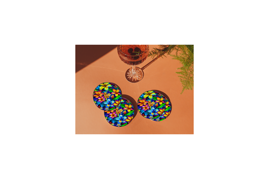 Tropical Plumeria Coasters - Vibrant floral coasters available in round or squar