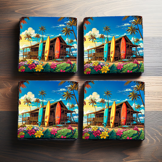 Surf Shack Slate Coasters – Round or Square | Tropical Tiki Bar Decor