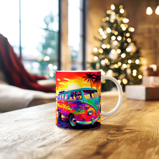 Retro Surf Bus Mug - Vibrant and nostalgic coffee mug featuring a retro van