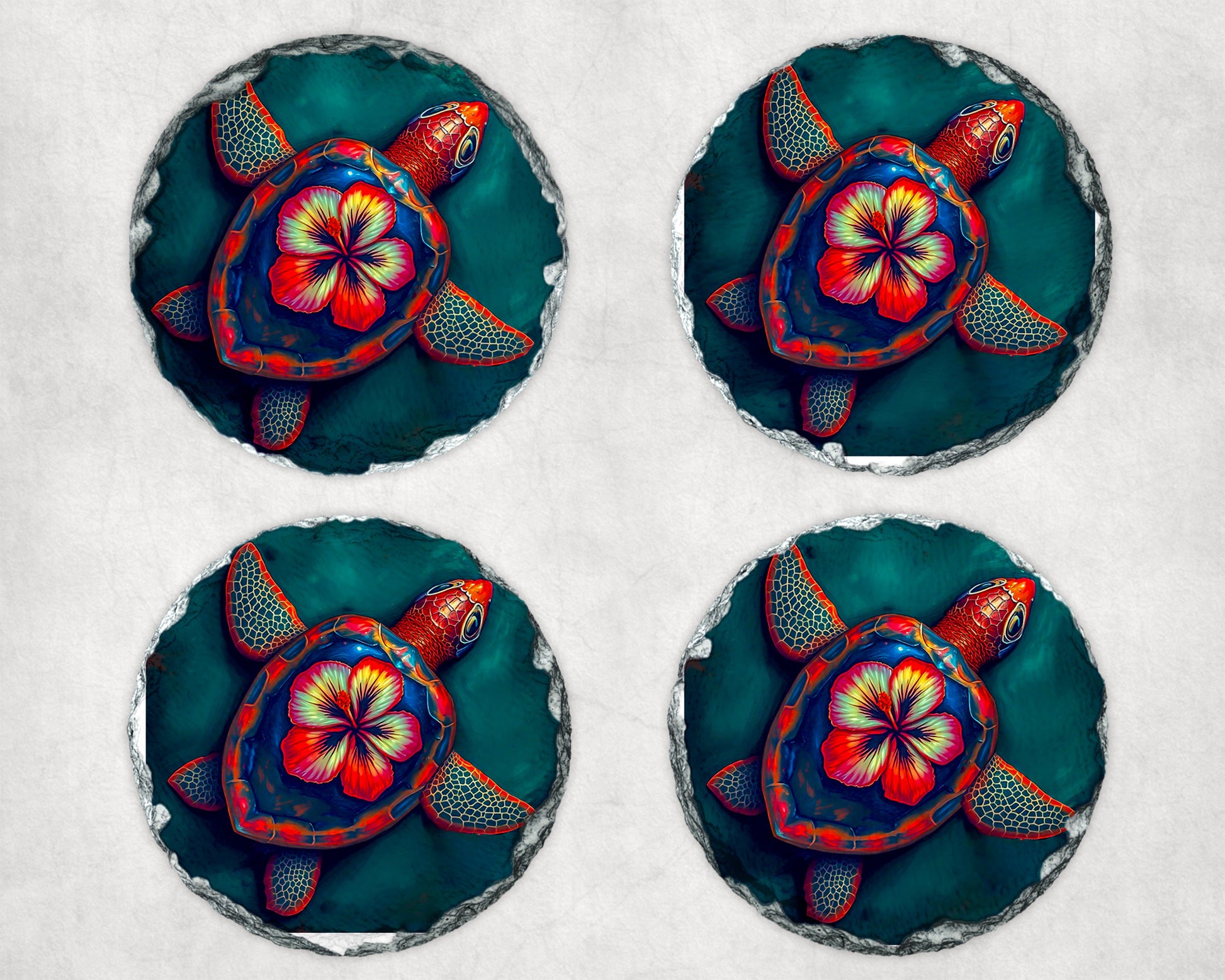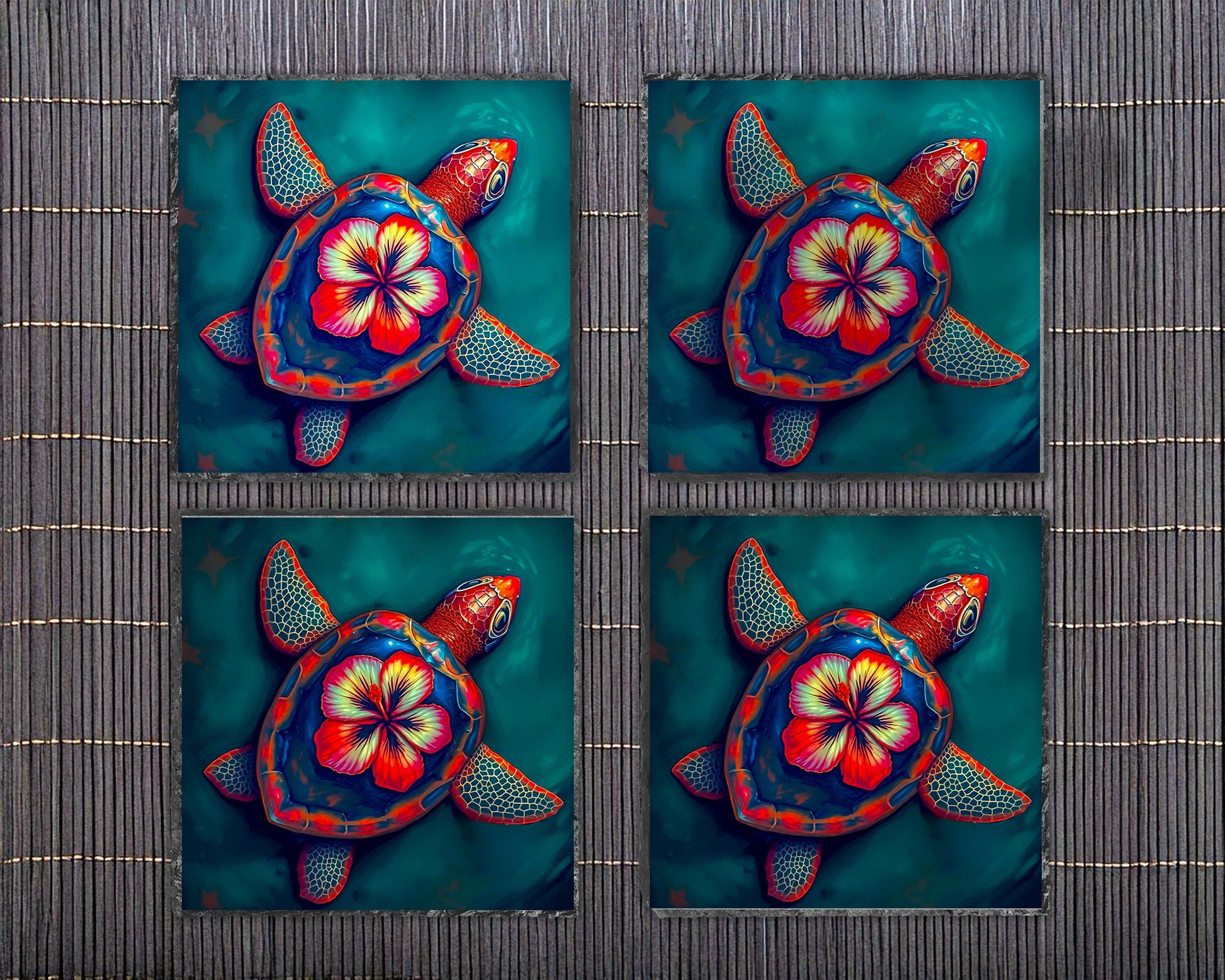 Hibiscus Turtle Coaster - Stunning coaster featuring a vibrant turtle